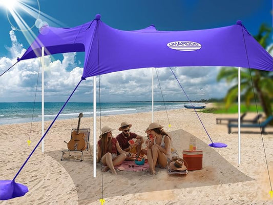 UMARDOO Family Beach Tent Canopy Sun Shade Portable 7×7FT, Large Wind Resistance Beach Sun Shelter Easy Setup with Packable Carry Bag for Outdoor Travel UPF 50+(Purple)