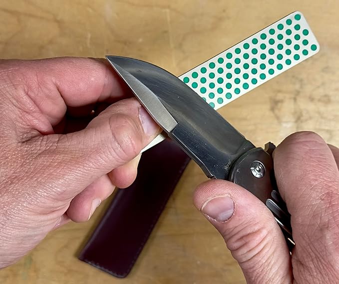 - Sharpens knives faster than conventional stones with DMT's monocrystalline diamond surface