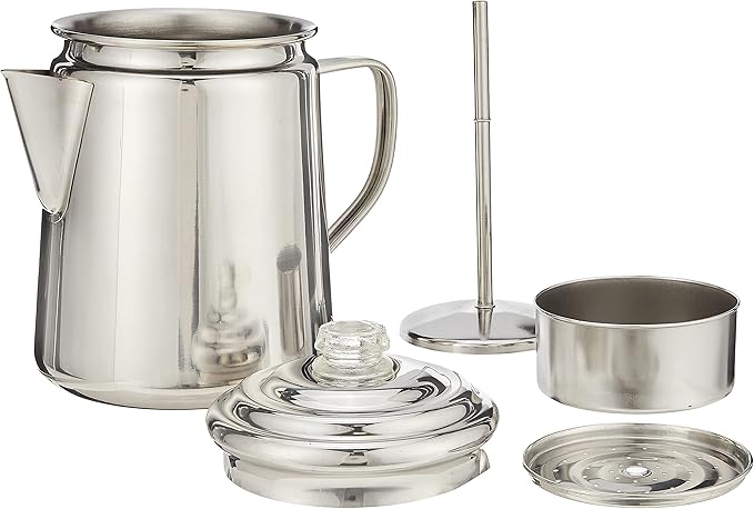 Coleman Stainless Steel Percolator Coffee Pot 12-Cup Capacity Lightweight Coffee Percolator No Filter Needed Durable Outdoor For Camping Backpacking RV Stovetop Campfire & More