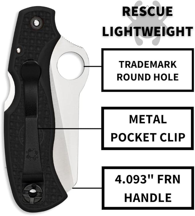 - High Performance: The blade of this Spyderco knife has a notched thumb ramp and an oversized Spyderco hole for ambidextrous one hand opening. It is highly effective for emergency rescue applications.
