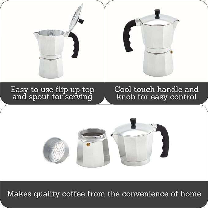 Imusa USA Aluminum Stovetop 6-cup Espresso Maker (B120-43V), Silver