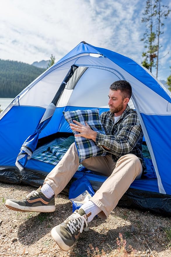 - Soft flannel plaid outer shell for a good nights sleep while camping, backpacking or hunting