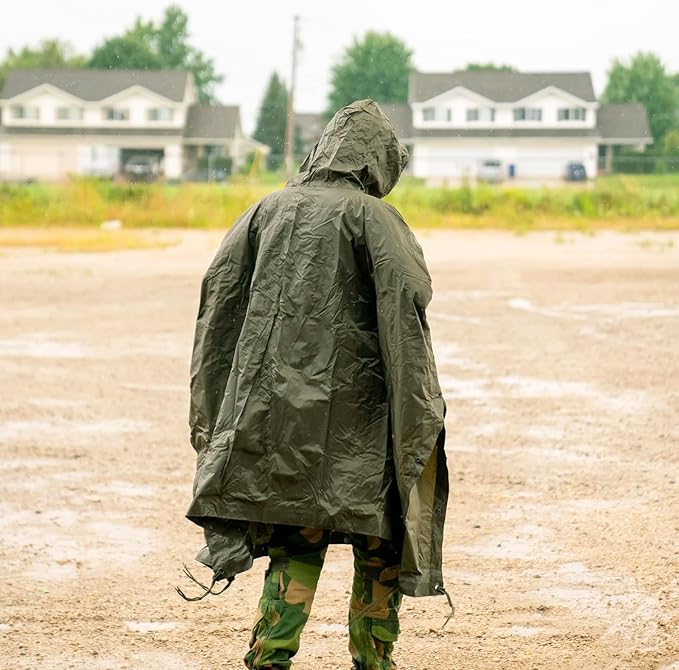 - DURABLE - The Ripstop Wet Weather Poncho is made of 100% polyester, featuring a robust Ripstop fabric that is both durable and tear-resistant; This ensures the poncho can withstand harsh weather conditions, making it an ideal choice for outdoor enthusiasts; The Polyvinyl Chloride coating provides additional resistance to water penetration and protection against the elements