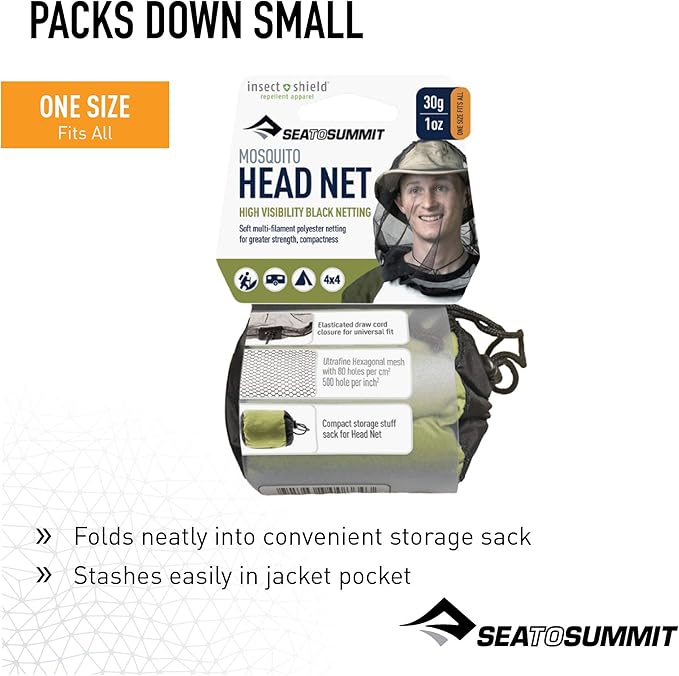 Sea to Summit Permethrin-Treated Mosquito Head Net Mesh Face Cover for Insects and Bugs