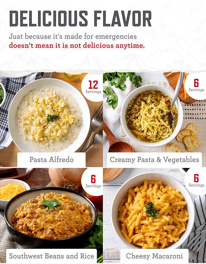 - DIVERSE CULINARY ADVENTURES: Experience a delightful array of 13 different delicious meal options including hearty soup, pasta, tasty rice, and more. These culinary delights aren't just for emergencies – they also make for fantastic companions on backpacking and camping expeditions.