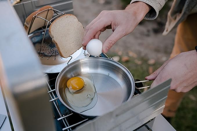 Love the lightweight design of this camping stove. It’s perfect for backpacking and cooks food quickly and evenly.