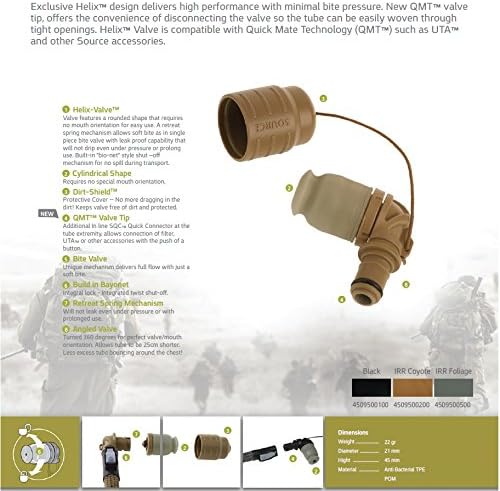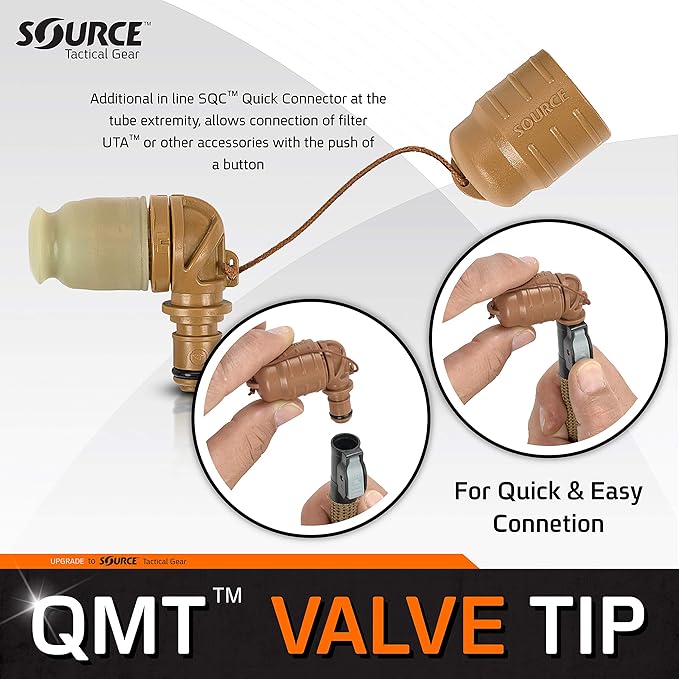 - QMT: QMT quick connector with auto-sealing mechanism for easy connection of Helix Bite Valve to any SOURCE Drinking Tube featuring QMT.