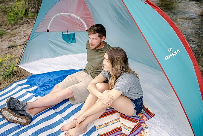 This camping tent was super easy to set up and kept us dry even during heavy rain. Spacious enough for the whole family!