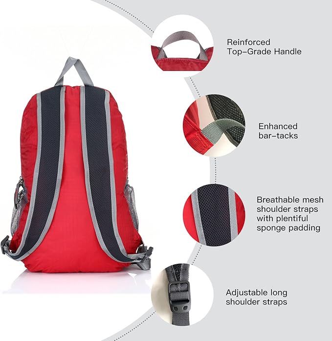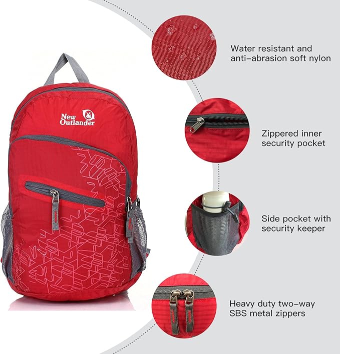 Outlander Packable Handy Lightweight Travel Hiking Backpack Daypack, Red