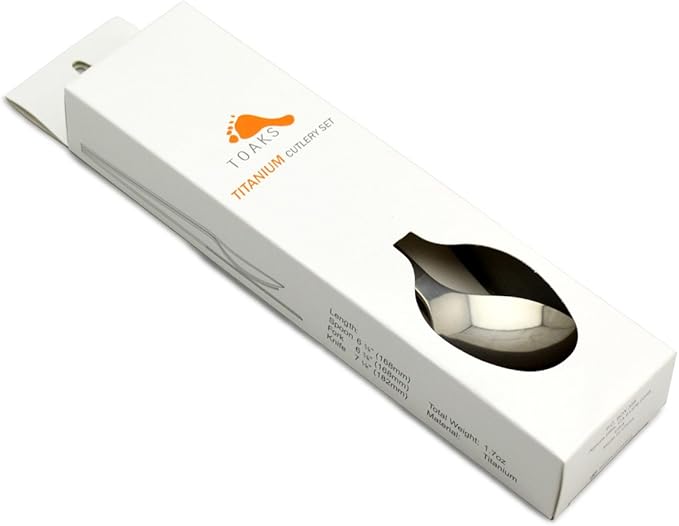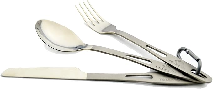 - Notes: 1. Polished eating area gives smooth touch while matte finished handles provide solid holding. 2. All three pieces are compatible with TOAKS TITONS Connector which is available on TOAKS Outdoor website. 3. The three utensils are held together with a removable aluminum carabiner.
