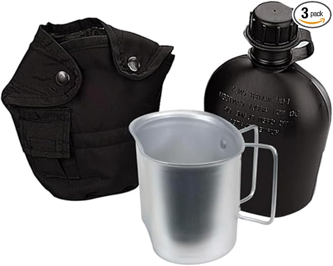 - Complete Set: Canteen Kit Includes Plastic Canteen, Felt-Lined Cover, And Heavy-Gauge Aluminum Cup.