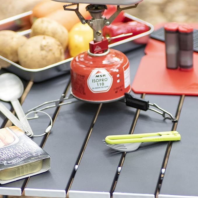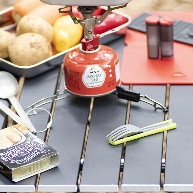 Love the lightweight design of this camping stove. It’s perfect for backpacking and cooks food quickly and evenly.