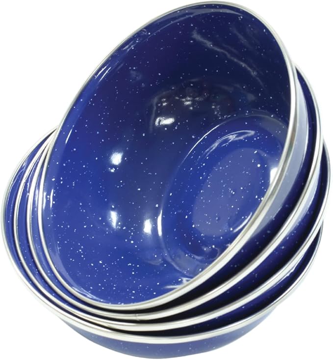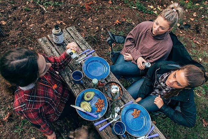 - High quality durable 24-piece steel tableware set with blue enamel finish