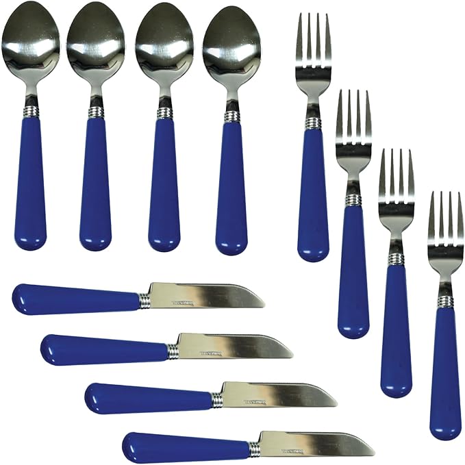 - Place settings for four with brilliant stainless steel edges, lightweight and compact