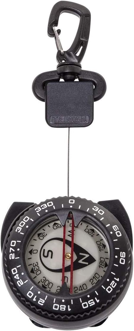 Trident Retractor Compass with Gate snap, Waterproof Oil Filled Compass for Scuba, Camping, Kayaking and Outdoor Sports