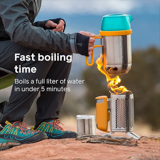 - Camping stove fueled by sticks, wood scraps or pellets creates fire for cooking and boiling water, and converts heat into electricity to charge smartphones and headlamps for camping, backpacking, and survival situations