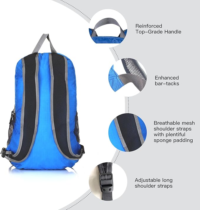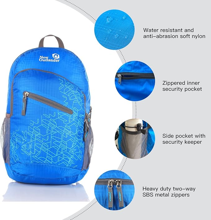 Outlander Packable Handy Lightweight Travel Hiking Backpack Daypack-Light Blue