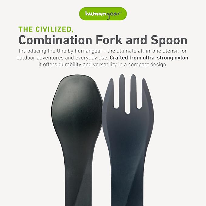 - SMARTER EATING: humangear's GoBites Uno is the utensil set you didn't know you needed. Built with smarter ends, including a deep spoon on one end and a fork on the other you can say goodbye to disposable plastic utensils (spoons, forks, and knives) and update your cutlery set