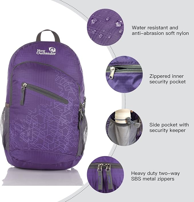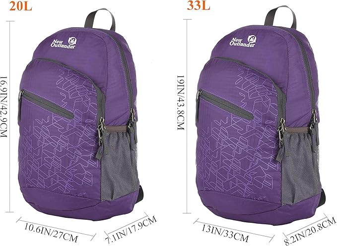 Outlander Packable Handy Lightweight Travel Hiking Backpack Daypack, Purple-L