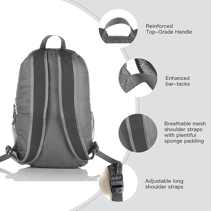 Outlander Packable Handy Lightweight Travel Hiking Backpack Daypack, Grey