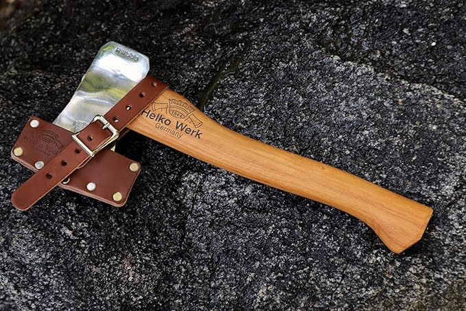 - Includes Full Grain Leather Sheath and 1 oz Bottle of Axe Guard Protective Oil: All Helko Werk axes and hatchets include a vegetable-tanned premium leather axe sheath to protect your axe blade and head. The Axe Guard oil is a metal protecting oil to help maintain the steel of your axe head, and prevent rust over time.
