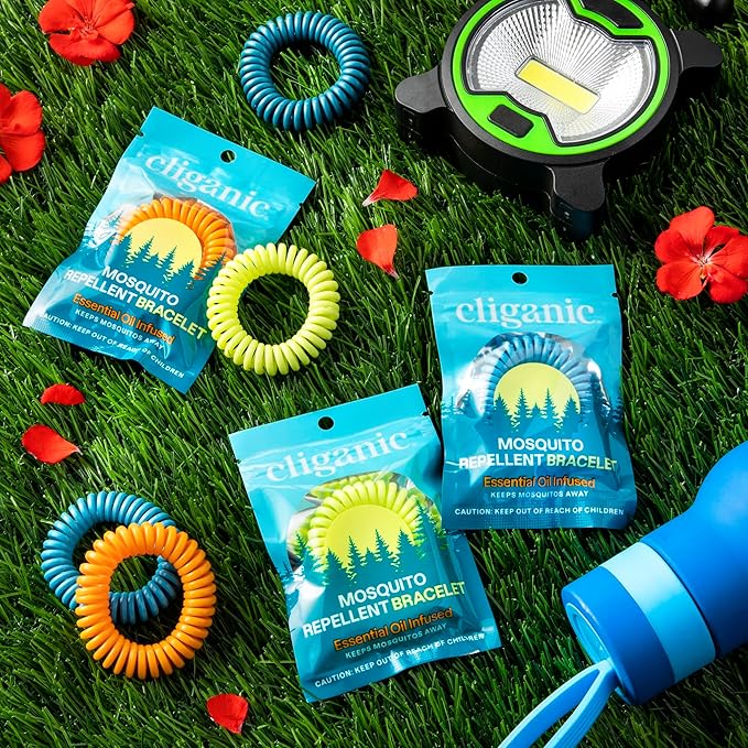 Cliganic 10 Pack Mosquito Repellent Bracelets, DEET-Free Bands, Individually Wrapped (Packaging May Vary)