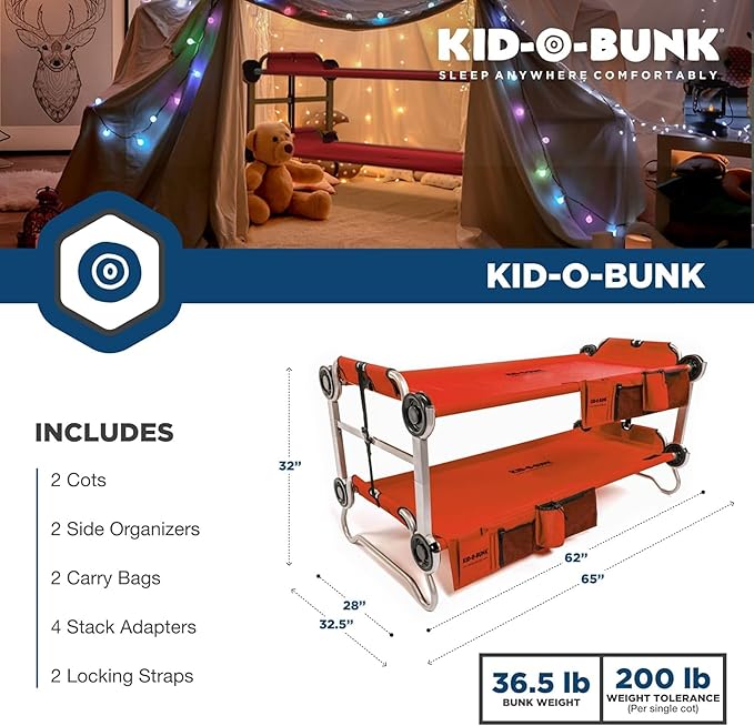 - IDEAL FOR ALL CHILDREN, AGES 7-12: Kid-O-Bunk is designed for children aged 7-12 and has a weight limit of 200lbs (91kg) per cot, ensuring safe and comfortable sleep for your little ones.