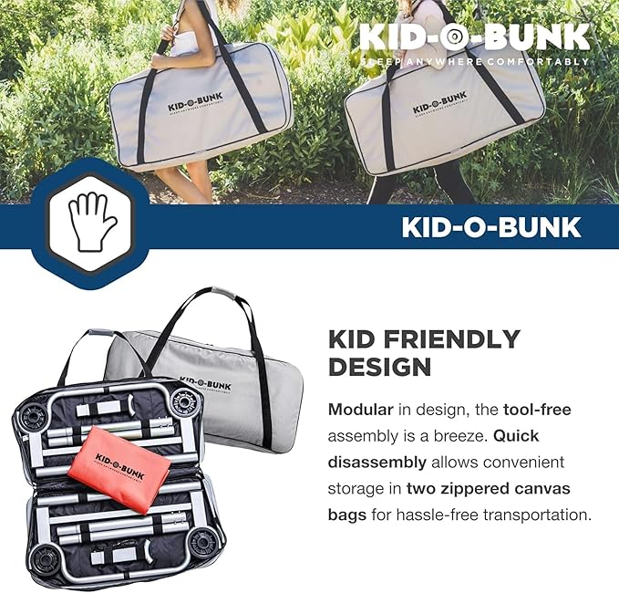 Disc-O-Bed Youth Double Cot Kid-O-Bunk, Modular for Bunk Beds, Dual Cots, or Bench with 2 Carry Bags for Portable Transport