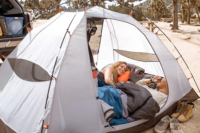 This camping tent was super easy to set up and kept us dry even during heavy rain. Spacious enough for the whole family!