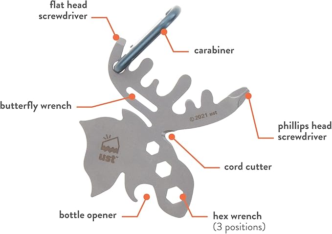UST Tool-a-Long Multi-Tool Carabiners with Durable, Compact Stainless Steel Construction for Hiking, Kayaking, Camping, Travel and Outdoor Survival