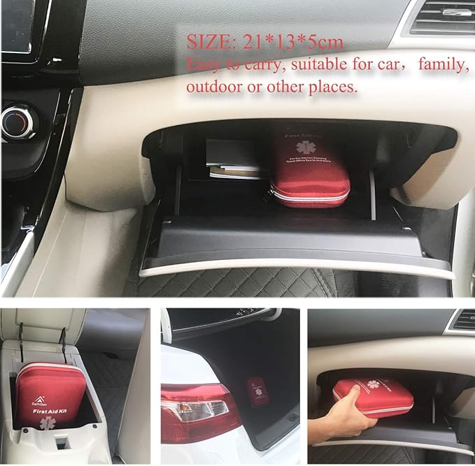 - DURABLE & COMPACT BAG (8.2" x 5.1" x 2"). Easy to carry, small and lightweight, yet holds all the essential emergency supplies and survival tools (220 pcs, refill when necessary). The first aid kit has just the right size so it fits anywhere in your car, atv, yacht, boat, jeep, bike,outdoor adventures,camping, hiking, hunting or motorcycle.