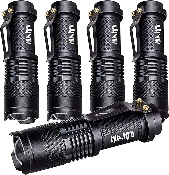 5 Pack SK-68 3 Modes Handheld Mini Cree Q5 LED Flashlight Torch Tactical Lamp 7w 300lm Adjustable Focus Zoomable Light