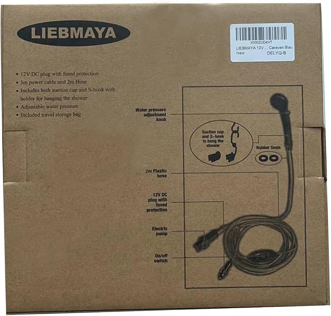 - Camping Shower with sponge filter, Cable lenght: 5m, Hose lenght: 2m