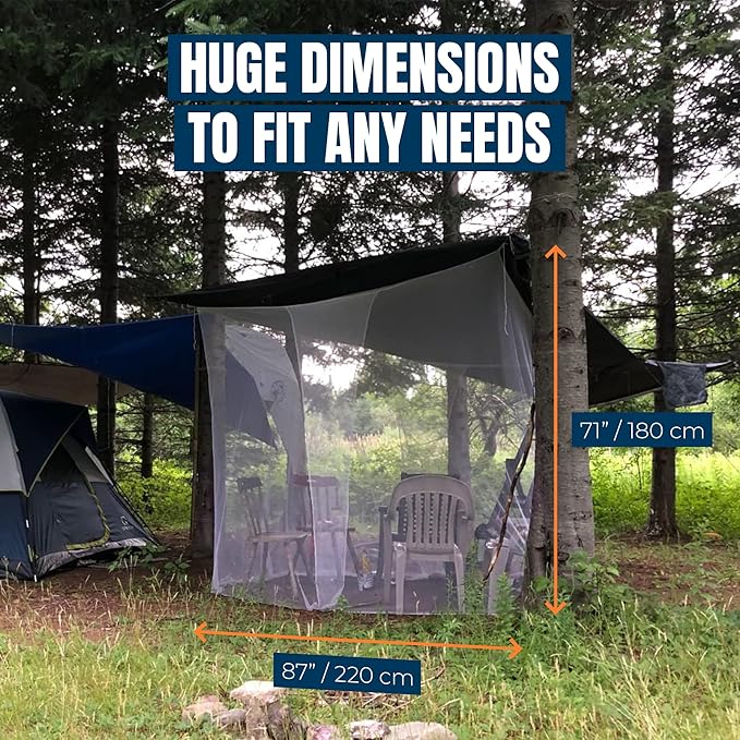 - Extra large King size, made for flexible use in all environments, in the bedroom (fits twin, double, queen and supreme king), on the patio, hammock, deck, barbeque, protecting you from mosquitoes, black flies, bugs and insects