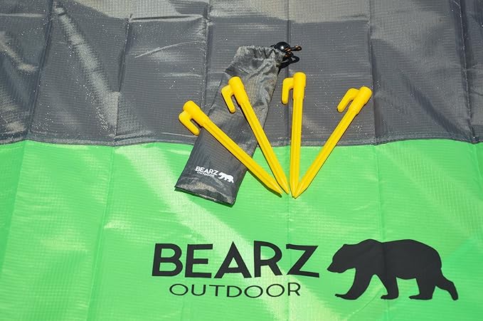 - WHY BEARZ OUTDOOR - We care about our products, and most of all, we care about our customers. Every little detail has been thought out to make these small yet sturdy stakes, from their vibrant yellow color and handy anchor to the carry pouch the stakes come in; if you ever have any questions at all contact us and we promise to take good care of you