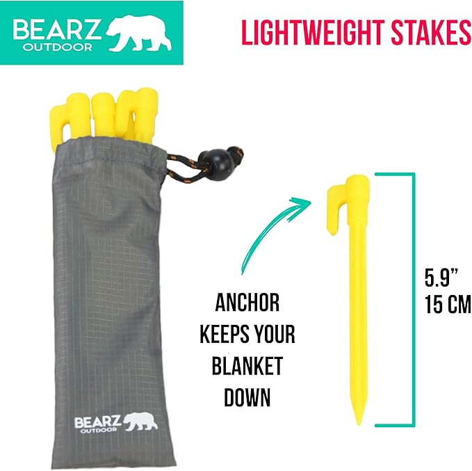 - SMALL STAKES for your picnic blanket, tarp or tent, accessory for your BEARZ Outdoor Beach Blanket