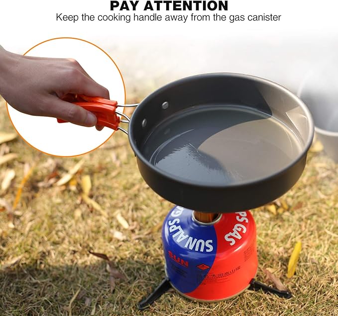 - LIGHTWEIGHT/MINI SIZE: REDCAMP camping cookware set weights 0.96 lbs/0.438kg, this backpacking cookset is exceptionally lightweight so that your barely feel the weight within the pack on your back, and it take up little space.