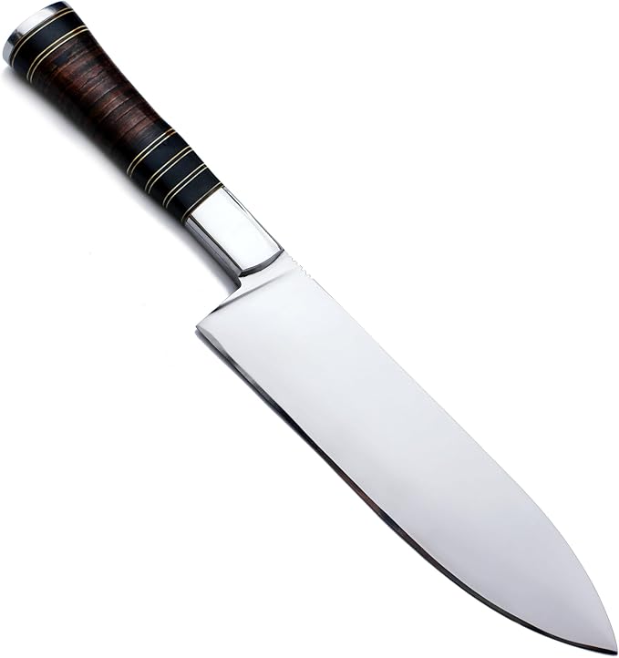 - Stacked Leather Handle. Full Tang. Veery Sharp edges
