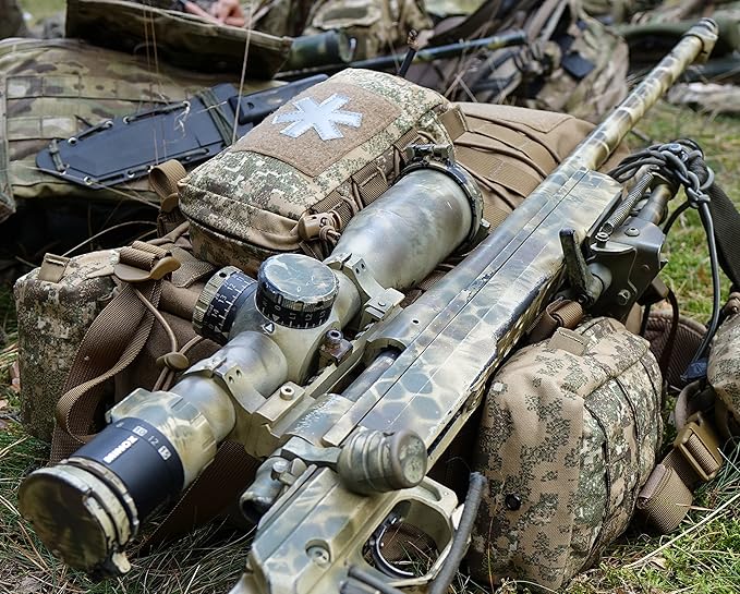 - Reflective paramedic cross. 4 x 2 MOLLE webbing panel on the back with two fastening straps. External dimensions: 7.1 x 3.9 x 2 inches (18 x 10 x 5 cm)