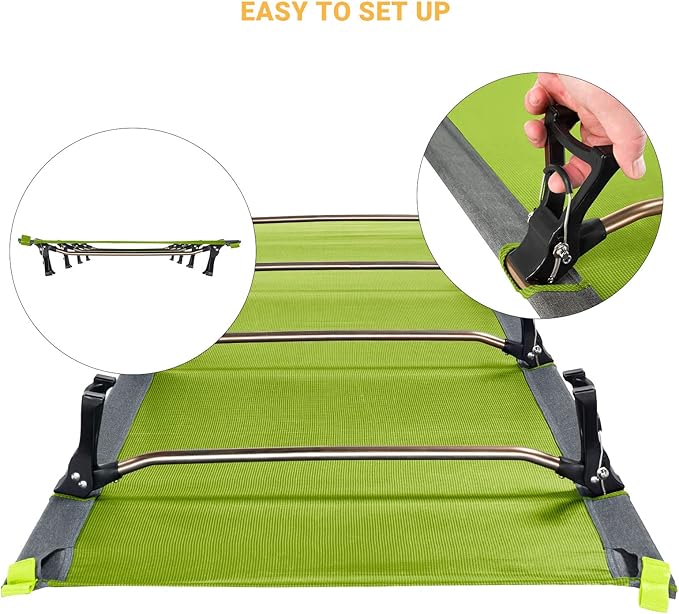 - ★【Ultralight & Portable】 Only 4. 9 lbs and packed Size: 14 × 5. 1 × 5. 1 inches, this camping cot is highly portable and space-saving! Wherever your adventure is, this smart light camp-cot can be stored in your backpack.
