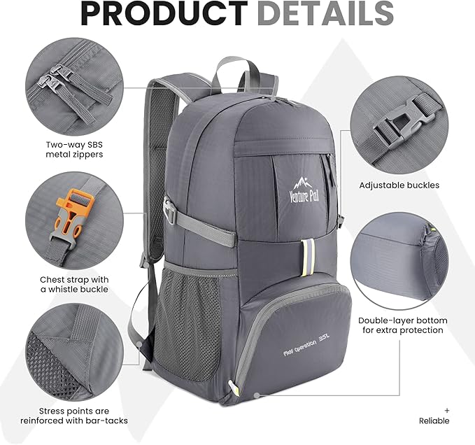 Venture Pal 35L Ultralight Lightweight Packable Foldable Travel Camping Hiking Outdoor Sports Backpack Daypack