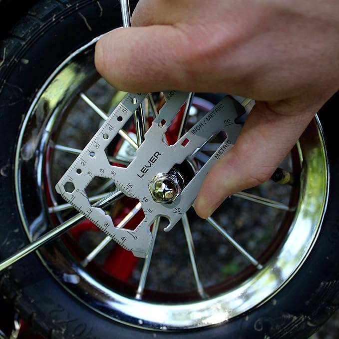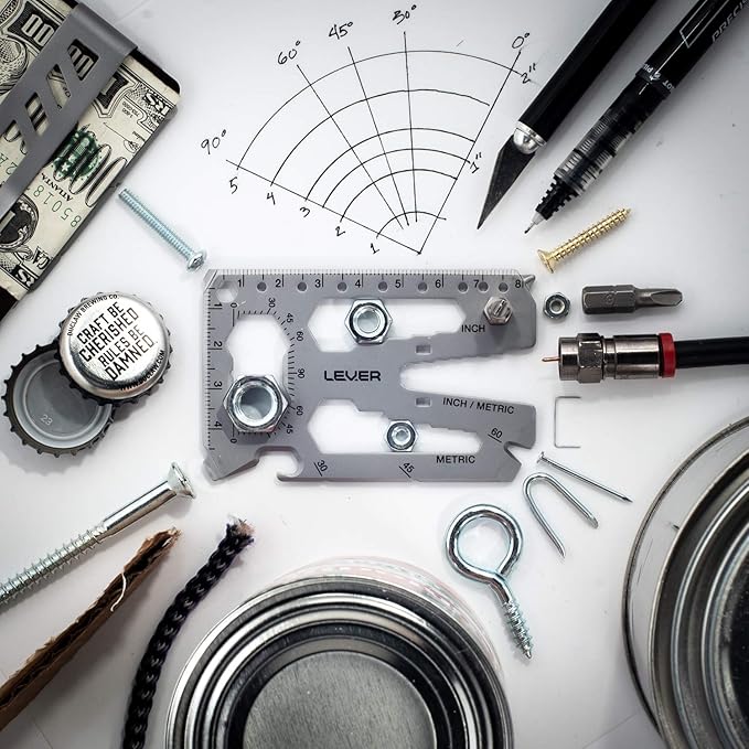 - GET STUFF DONE - Knock out daily tasks on the fly. This edc multitool has a credit card bottle opener, box opener, 24 wrenches, screwdrivers, prybar, cord cutter, rulers, camping can opener and more.