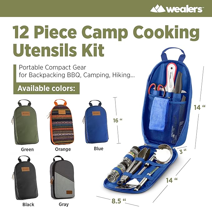 Camp Kitchen Cooking Utensil Set Travel Organizer Grill Accessories Portable Compact Gear for Backpacking BBQ Camping Hiking Travel Cookware Kit Water Resistant Case