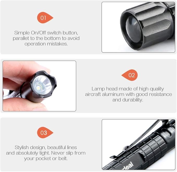 - 【EASY TO USE】Simply 1 switch mode lighting effect design. you can turn on/off the pen flashlight within 1 second.