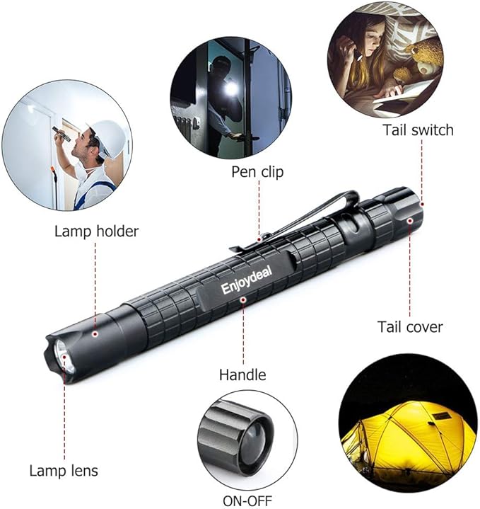 - 【CONVENIENT & DURABLE】Mini body and hand size, convenient to carry. The pen light's slim profile fits into small tight spaces to illuminate hard to see work areas. Comes with a clip, suitable for carrying around, it's a good choice for Inspection and repair.