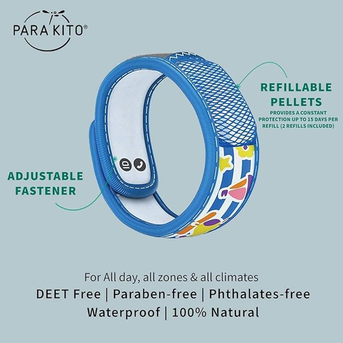 - FUN & STYLISH PROTECTION: Whether strolling through a forest or playing at the pool, PARA’KITO Kid's Wristbands will become your child's best friend. Can be worn around the wrist or ankle. You can even place it beside your sleeping pad for the perfect mosquito-free camping night. The perfect addition to your glamping accessories, or to your hiking & camping gear!
