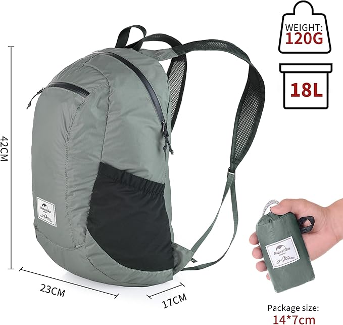 Naturehike 18L Lightweight Hiking Backpack, Waterproof Camping Packable Backpack Ultralight for Travel, Airplane, Small Hiking Daypack for Adults, Grey