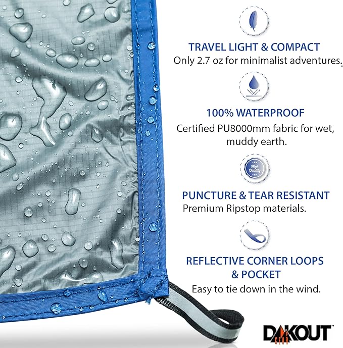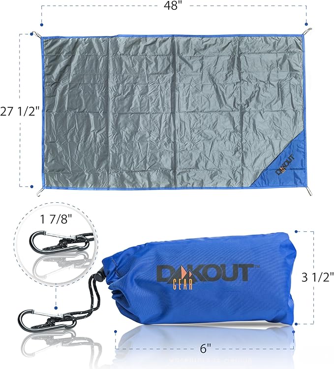 Ultralight Backpacking Tarp Ground Cloth 2.7 oz Waterproof Mini Pocket Blanket 27.5 x 48 Inches Compact Packable Groundsheet Hiking Gear for Two Pouch and Carabiner by DAKOUT Gear