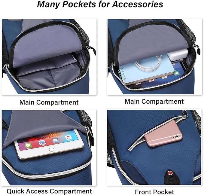 • Dimensions: 15.3 x 7.5 x 3.5 inches (L x W x H). Smaller zippered one for phones, wallet or outdoor/travel sundries. 2 mesh bags in each side for water bottle or umbrella (up to largest diameter 2.5 inch). Multi-functional storage area, accessory compartment with functional pockets to keep your items.