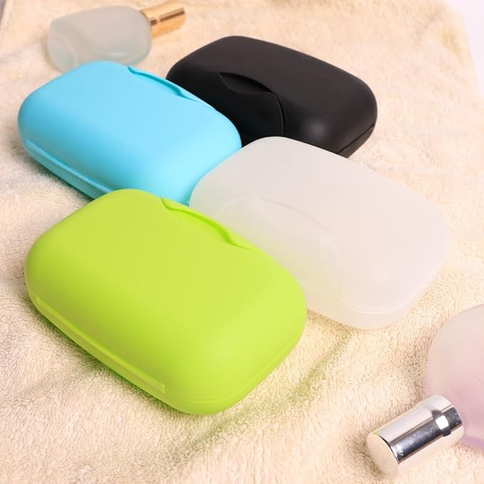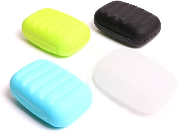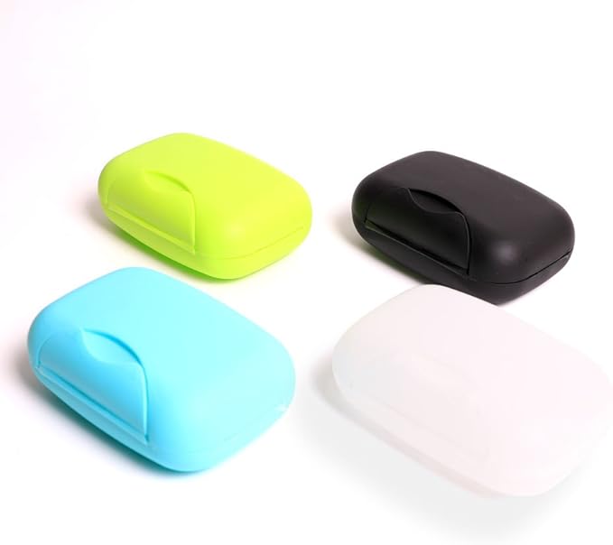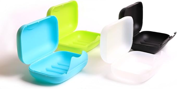 4 Pcs Plastic Soap Case Holder Container Box Home Outdoor Hiking Camping Travel Black & Clear & Lime Green & Blue